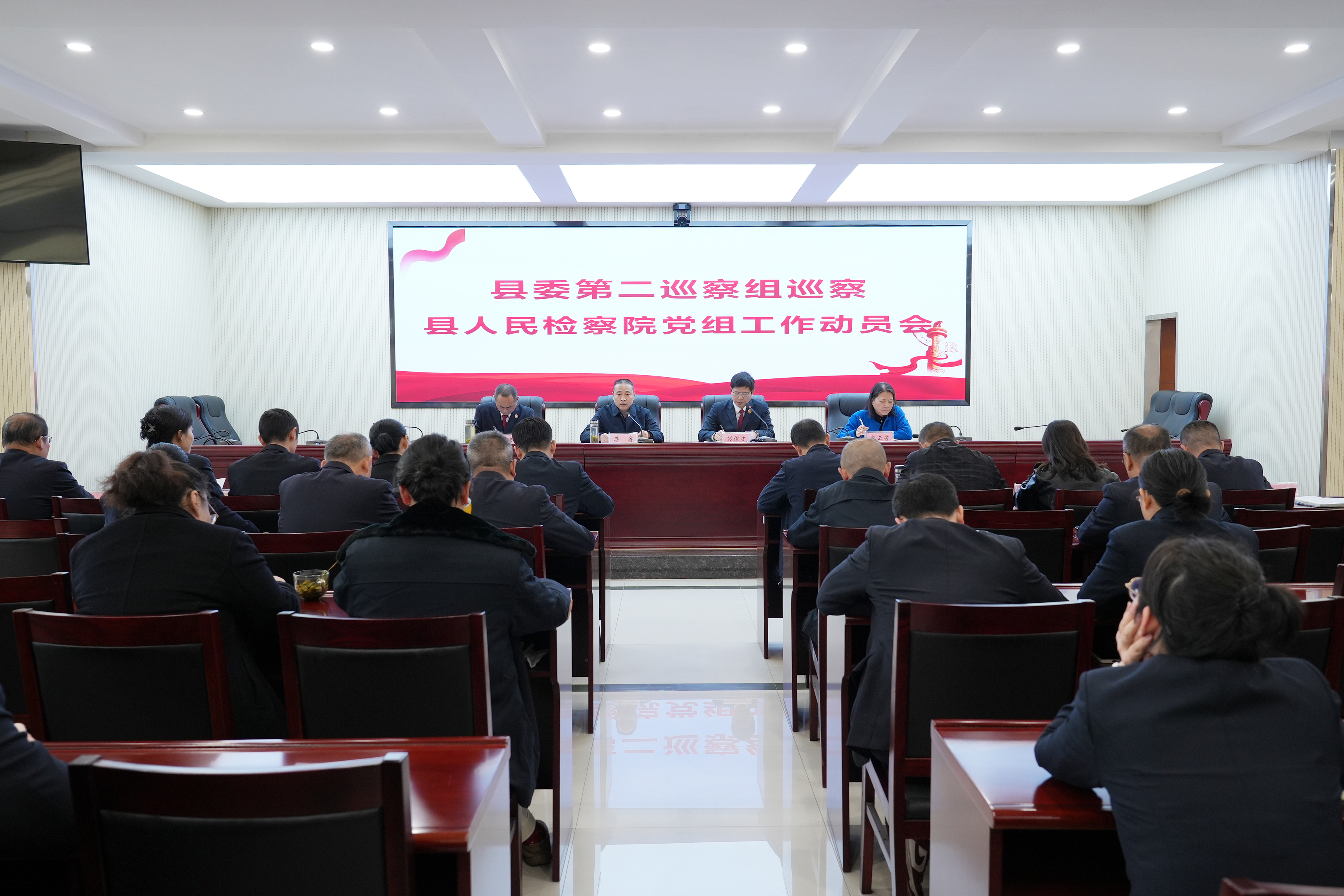 县委第二巡察组全体成员出席会议,县检察院全体干警参加会议。