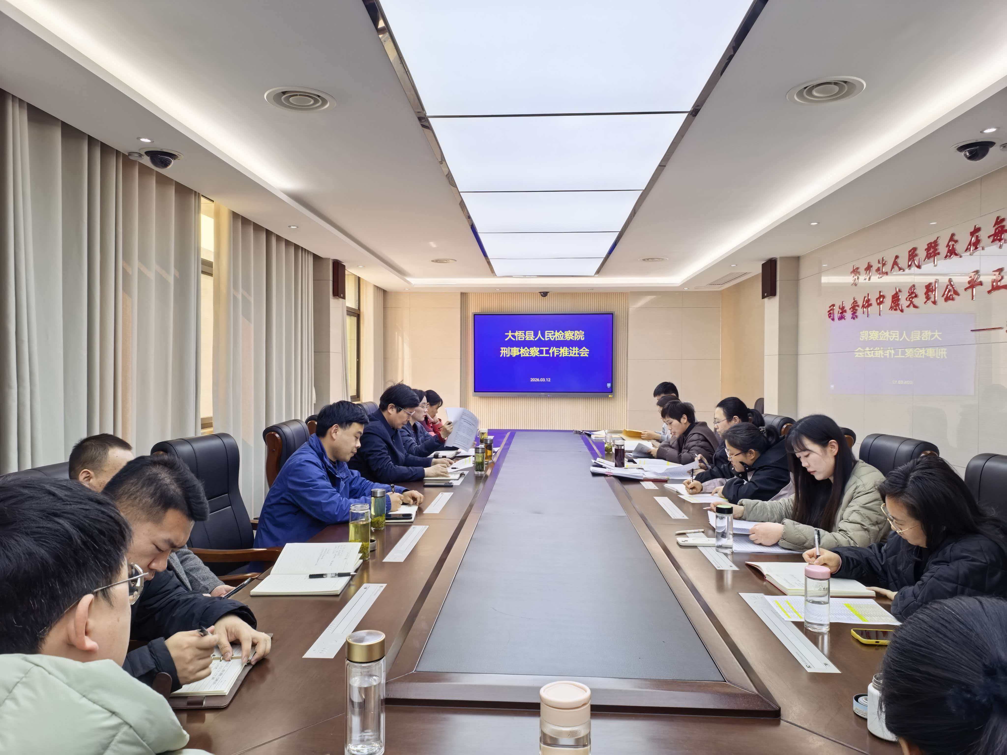 为深入贯彻落实上级决策部署,全面提升刑事检察工作质效,近日,大悟县人民检察院组织召开刑事检察业务工作推进会。院党组书记、检察长彭俊才出席会议并讲话,院党组成员、副检察长钟艳主持会议,刑事检察部门全体干警参加。